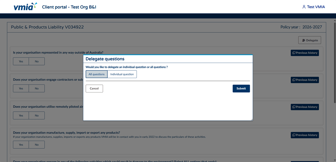You may want to delegate question(s) in your Renewal Risk Information questionnaire to others within your organisation.