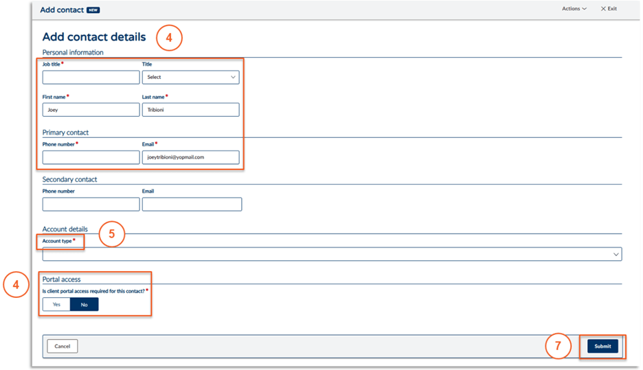 Step 3. Enter the individual’s contact details in the relevant fields.